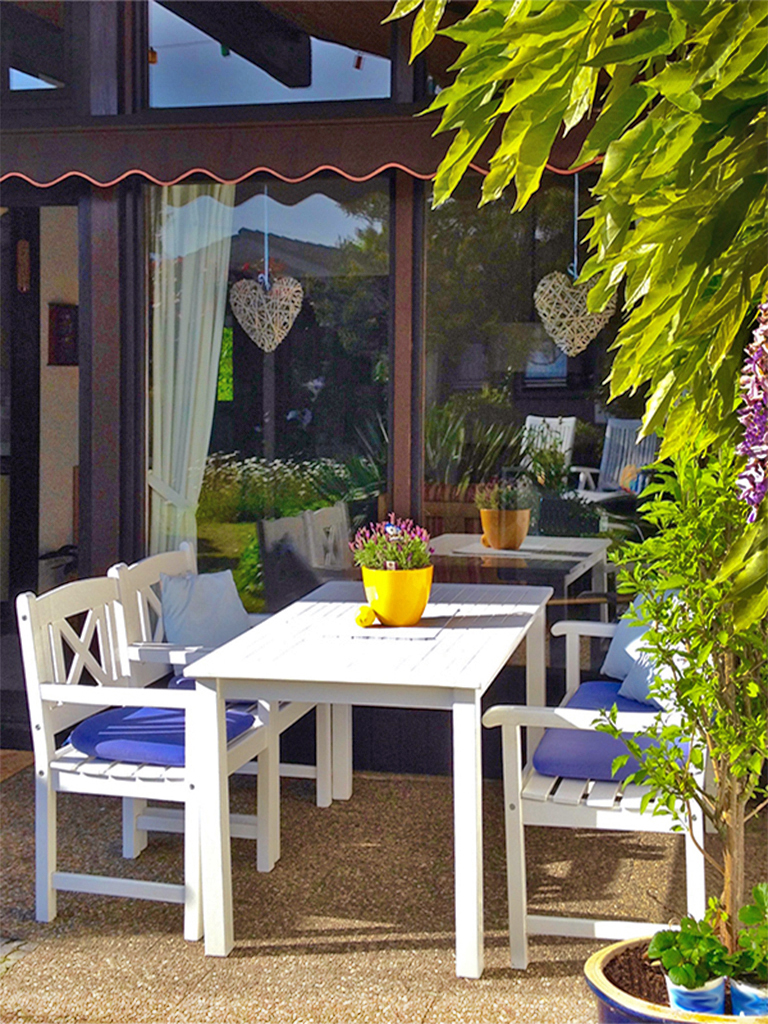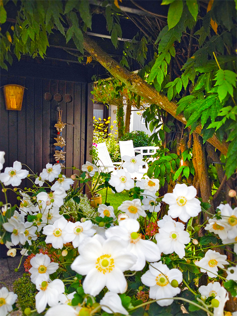 Detail eingerichtetetes Traumhaus und die grüne Blumenoase zu schätzen